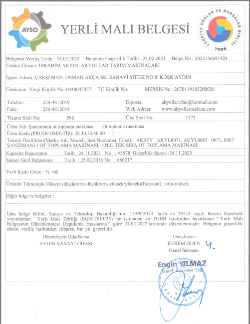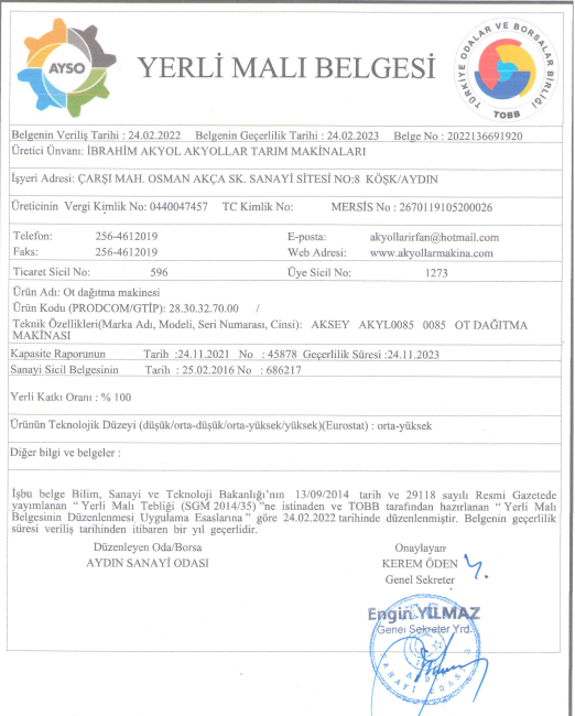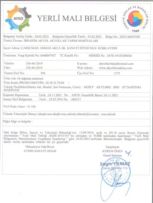AKYOLSAN MAKİNA A.Ş KURULUŞUDUR.